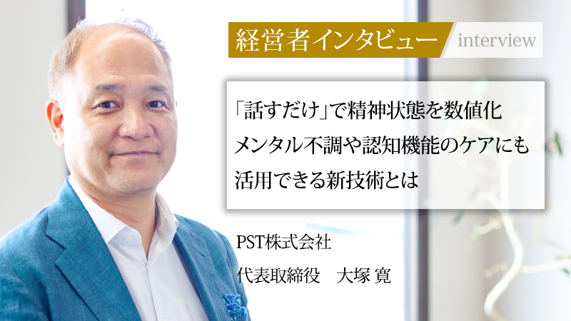 うつ病や認知症といった精神・神経系疾患は、いまや社会課題の一つである。年々罹患者数が増加し、対策が急務となっている一方で、診断は医師による問診や本人のアンケートなどに頼っているのが現状だ。そんな課題を解決するのが、PST株式会社が開発する「音声バイオマーカー」技術である。同社代表取締役の大塚寛氏に、技術開発の経緯や今後の事業展望について話を聞いた。