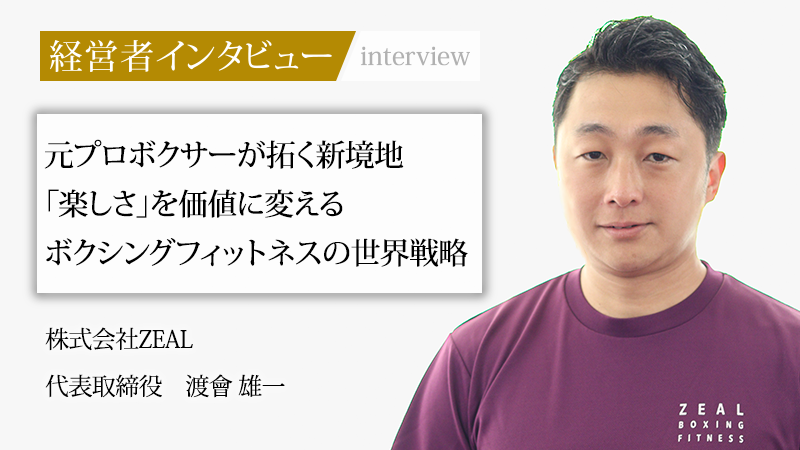 株式会社ZEALの渡會雄一氏は、プロボクサーとして活躍した経歴を持つ。引退後はデジタルマーケティングの世界に飛び込み、さまざまなビジネス領域で研鑚を積んだ。そして両者の経験を融合させ、独自のフィットネスジム「ZEAL BOXING FITNESS」(以下、「ZEAL」)を立ち上げる。これは、ボクシングにデジタル技術を組み合わせた、今までにないサービスだ。渡會氏がこのビジネスで何を目指すのか、そのビジョンと戦略をうかがった。