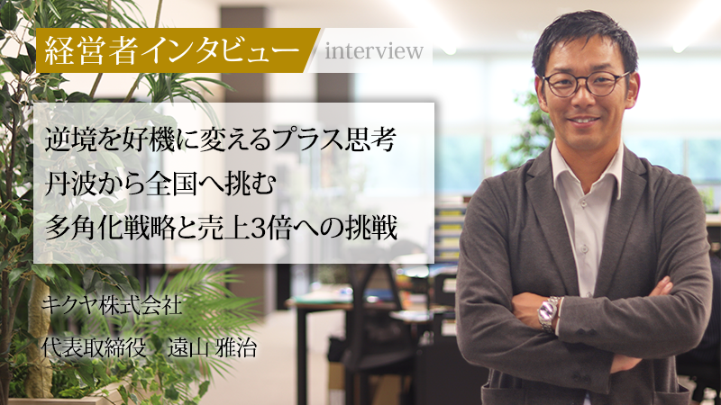 兵庫県丹波篠山市に拠点を置き、ギフト事業から葬祭、EC、ふるさと納税支援、さらには自社ブランド商品の開発・卸売まで、多角的な事業を展開するキクヤ株式会社。創業家に生まれ、予期せぬ中国留学という経歴を持つ代表取締役の遠山雅治氏。先代のワンマン経営から脱却し、「社員が主役の会社」への組織改革を推進した。逆境すらもチャンスと捉える揺るぎないプラス思考を原動力に、会社の急成長を牽引する同氏に、その事業戦略と経営哲学について聞いた。