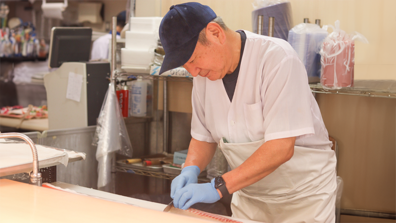 一番の強みは、生鮮食品の売上構成比が60%以上と非常に高い点です。特に鮮魚は、他では見られないような豊富な種類を取りそろえています。また、食肉に関しても、スーパーではあまり見かけないような専門的な部位を扱っています。これらは、手間がかかるという理由で大手スーパーが避けたがる商品です。しかし、お客様が本当に求めているのは、かつての商店街にあったような、活気と専門性のある店だと考えています。私たちは、他社がやらないことにこそ勝機があると考え、あえて手間暇をかける道を選んでいます。