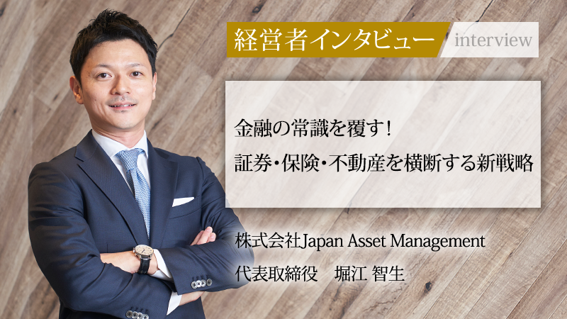 証券・保険・不動産を横断した総合金融サービスを展開する株式会社Japan Asset Management。同社は既存の金融機関が持つ常識に挑み、真に顧客本位の資産運用を日本の文化として根付かせることをミッションに掲げる。代表取締役の堀江智生氏は、野村證券株式会社で全国トップの営業成績を収めた後、30歳で独立。堀江氏を突き動かす哲学の原点と、独自の組織論、そして今後の展望に迫る。
