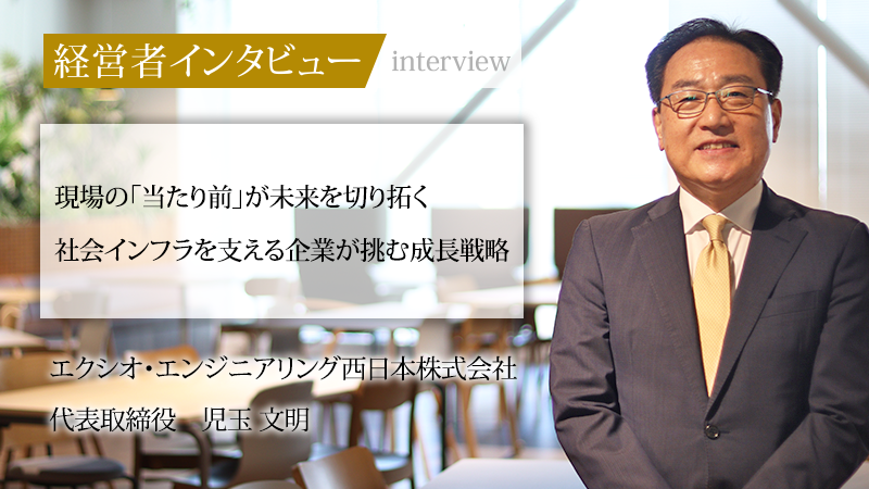 エクシオグループの一員として、社会インフラの構築を担うエクシオ・エンジニアリング西日本株式会社。同社を率いるのは、旧日本電信電話公社(現・NTT)出身で、開発から営業、企画まで多彩なキャリアを歩んできた代表取締役の児玉文明氏だ。真面目な企業文化を継承しつつ、管理中心だった組織を「現場で実行できる」体制へと変革した。現場の創意工夫を価値に変える独自の哲学や、未来を担う人材への熱い思いについて話を聞いた。
