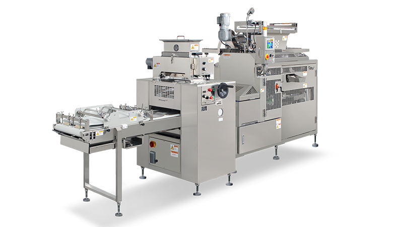 弊社事業の根幹には、二つのコアな技術があります。一つは、世界で初めて開発した食品の餡などを生地で「包む」技術、つまり自動包あん機です。そしてもう一つが、パン生地を薄いシート状にしてから成形する独自の製パン技術です。生地へのダメージを最小限に抑えられるこの技術も、弊社の大きな強みといえます。この二つの基本技術を軸に、さまざまな食品へと応用展開しています。