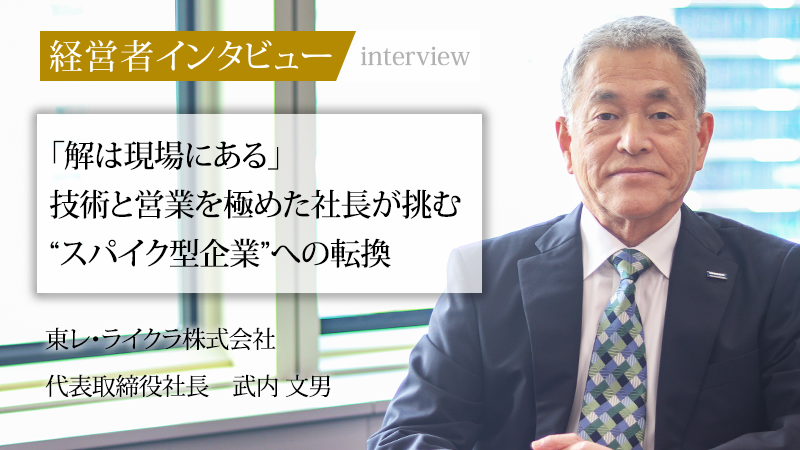 技術、研究、製造、そして営業。企業の根幹を成すあらゆる「現場」を渡り歩いてきた武内社長。その言葉の端々から、机上ではなく、常に現場に立ち続けることで培われた、揺るぎない自信と哲学が伝わってくる。「スパイク」という力強い言葉で語られる未来像は、社員一人ひとりの強みを信じ、顧客と共に業界を盛り上げたいという、温かく誠実な思いに支えられている。すべてのステークホルダーへの感謝を胸に、新たな挑戦へと踏み出した同社の未来に、大きな期待が寄せられる。