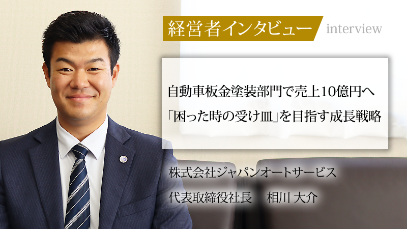 埼玉県狭山市と志木市に拠点を置き、自動車の板金塗装・整備事業を展開する株式会社ジャパンオートサービス。同社を率いるのは、父と同じ28歳で代表取締役社長に就任した相川大介氏だ。同氏は従来の職人気質の慣習を打破し、革新的な組織改革を進めている。今回、社長就任時の覚悟や、事業経験から得た学びを基にした独自の経営戦略、そして自動車板金塗装部門で売上10億円を目指す明確なビジョンについて、詳しく話をうかがった。