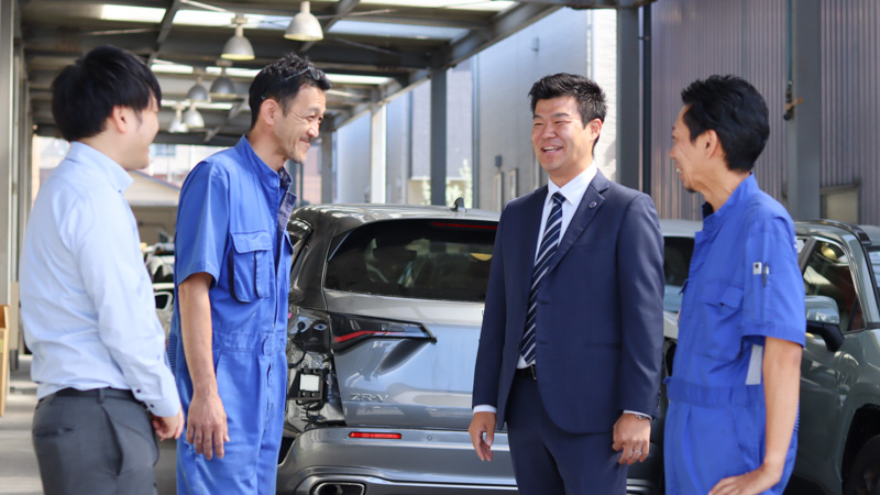 学生時代は、創業者である父と家で仕事の話をする機会がなく、私の就職活動が始まるまで、会社の事業内容を詳しく知りませんでした。当時は他社への就職も検討しましたが、初めて父から事業について詳しい話を聞く機会がありました。事故で一台一台損傷が異なる車を直し再生させる仕事に「医者のようだ」と感じ、強い魅力を覚えました。