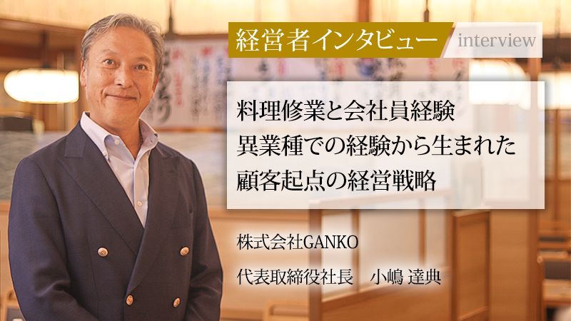関西を中心に和食・寿司店を幅広く展開し、日本の食文化の伝統を守り続ける株式会社GANKO。同社は長年培ってきたブランドイメージを大切にしつつ、若年層や女性といった新たな顧客層の獲得を目指している。そのために新業態の開発やリブランディングに積極的だ。代表取締役社長の小嶋達典氏は、料理修業を経て、顧客視点を学ぶために電機メーカーで勤務したというユニークな経歴を持つ。現場での経験と異業種で得た学びを融合させ、従業員の幸福と会社の成長を追求する。同氏にその経営戦略と今後の展望について詳しく話を聞いた。