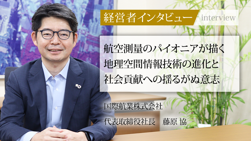 1947年に創立し、航空測量のパイオニアとして75年以上にわたり日本の「まちづくり」「国づくり」を支えてきた国際航業株式会社。位置情報を活用する地理空間技術の専門家集団である。同社は、衛星から地上、水中までを「測る」技術を基盤に、データの分析から未来への提案までを一貫して手がける独自の強みを持つ。長年、現場の第一線でキャリアを積んだ藤原協氏が、2025年4月に代表取締役社長へ就任した。先代から社会貢献への志を受け継ぎ、事業、仕組み、意識の「3つの変革」を掲げる同氏に、その軌跡と未来への展望を聞いた。