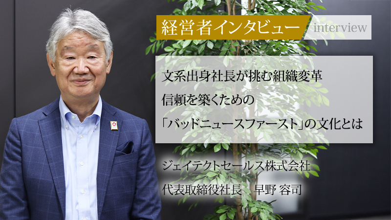 ジェイテクトセールス株式会社は、工作機械や自動車部品、ベアリングなどを製造する株式会社ジェイテクトの販売会社として、多岐にわたる製品を国内外に提供している。同社は、顧客の現場に入り込み、潜在的な課題を発掘することで、単なる物売りから社会課題解決を目指すソリューションプロバイダーへと変革を遂げようとしている。入社以来、生産管理、営業、複数の企業の統合という多様なキャリアを歩んできた代表取締役社長の早野容司氏は、その豊富な経験を活かし、会社と社員の成長を牽引している。そんな早野氏に、会社を次のステージへと導くための改革と、未来への思いについて話をうかがった。