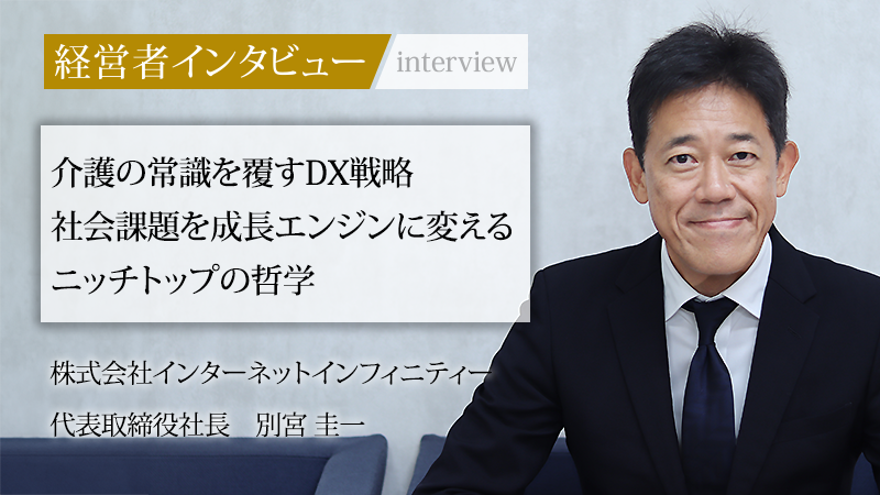 株式会社インターネットインフィニティーは、「健康な未来」という理念のもと、超高齢社会の課題解決に挑む企業である。リハビリ型デイサービス「レコードブック」による健康寿命の延伸支援と、介護現場の生産性向上を目指すDXソリューション事業を展開。社会課題を成長機会に変える独自のビジネスモデルで、社会貢献と高い成長性を両立させている。創業者である代表取締役社長の別宮圭一氏に、事業の強みと成長戦略を聞いた。
