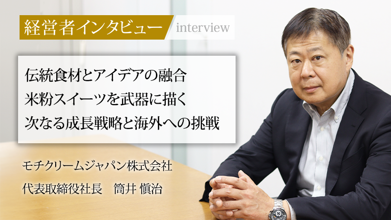 米粉を使った冷凍スイーツで独自のポジションを築いているのがモチクリームジャパン株式会社だ。神明グループの一員として米粉事業の中核を担う同社は、大手では難しい小ロット生産や多彩なフレーバー展開で差別化を図っている。長年にわたり営業と管理の両面で経験を積み、2025年6月に代表取締役社長に就任した筒井愼治氏。その事業戦略と挑戦に迫った。