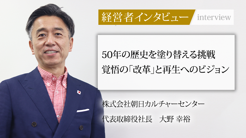 株式会社朝日カルチャーセンターの改革を牽引する大野幸裕社長に話を聞いた。長年の営業経験やグループ会社への出向で培った経営の知見を活かし、就任直後から4カ月連続の単月黒字(11年ぶり)を達成。上期営業利益を全国の拠点を集約し、1社となった2010年度以来の最高益とした手腕は目覚ましい。