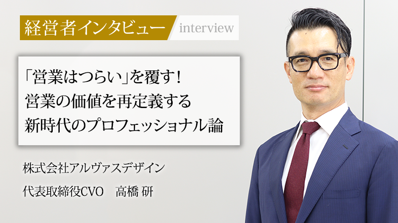 「人の可能性を拓き『営業する/される』が楽しい世の中を実現する」というビジョンを掲げ、営業の側面から企業の成長を支援する株式会社アルヴァスデザイン。同社を率いる代表取締役 CVOの高橋研氏は、大手化粧品メーカーの研究開発職から営業の世界へ転身したユニークな経歴を持つ。お客様自身も気づいていない課題を提示し解決に導く「インサイトセールス」を軸に、多くの企業の変革を後押ししてきた。論理だけでは動かない人の心を動かし、関わる人すべてがワクワクする営業の形とは何か。高橋氏に、その哲学と組織づくり、そして今後の展望について聞いた。