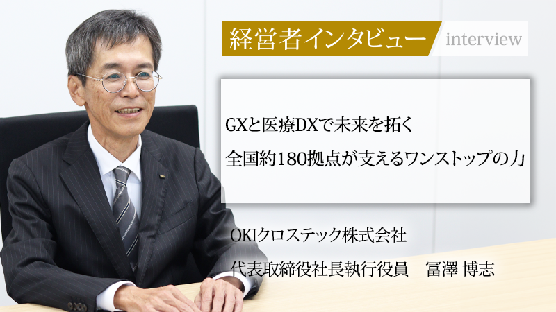 沖電気工業(OKI)グループの一員として、社会インフラを支えるOKIクロステック株式会社。同社は全国に約180の拠点を持ち、メカトロ機器(※1)の設置・保守からICTソリューション(※2)の提供までをワンストップで手掛ける。その強みを最大限に生かすのが、2024年に代表取締役社長執行役員に就任した冨澤博志氏だ。常に「なぜ」を問い続けるその姿勢は、いかにして育まれたのか。現場の声に耳を傾け、人手不足という課題に立ち向かう。新たな領域へ挑む同社の現在地と未来像について、話を伺った。