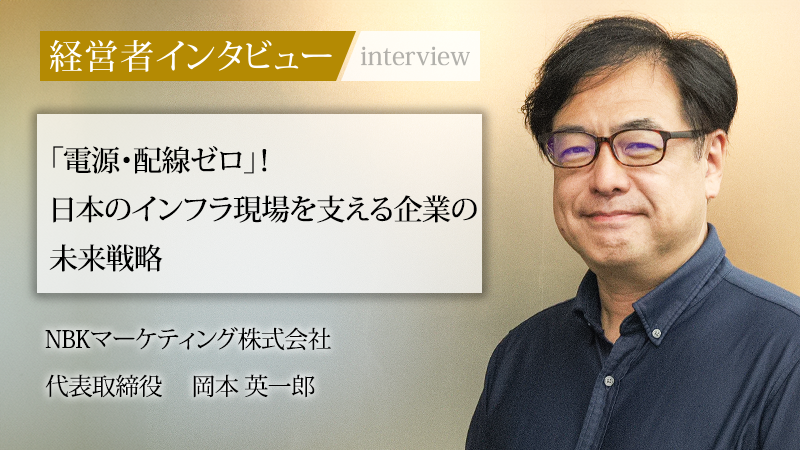 電源も配線もなしに3年間稼働し続けるカメラと優れたクラウド型の点検AIを利用した日々の点検を自動化するシステム、そして億単位の大きなコストが掛かり危険な作業も伴う定期点検を安全化・自動化するロボット。そんな常識を覆す技術が今、人手不足や老朽化に直面する日本の巨大プラントの未来を支えようとしている。これらの革新的な点検自動化サービスを提供するのが、NBKマーケティング株式会社だ。代表の岡本英一郎氏は、465年の歴史を持つ老舗の後継ぎでありながら、一度は会社からスピンオフした人物。幾多の苦難の末にたどり着いた「人を活かす」という信念の原点、そして日本の未来を見据える事業の展望について話を聞いた。