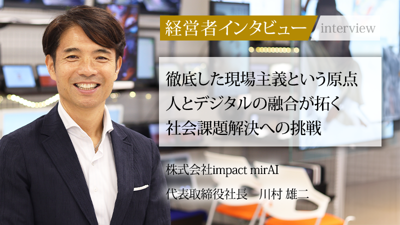 2025年7月、株式会社impactTVから商号を変更し、新たなスタートを切った株式会社impact mirAI。同社は「ヒューマンリソース(人的資源)」と「デジタルソリューション」という二つの強力な資源を融合させ、人手不足やDX推進といった現代社会の重要課題に挑む。30年ぶりのインフレ経済という大きな変化を「ビッグチャンス」と捉え、力強く舵を取るのは代表取締役社長の川村雄二氏。その情熱の源泉は、アウトドアブランドの営業で培った徹底的な「現場主義」と、39歳で自らを追い込み、覚悟を決めたベンチャーへの挑戦にあった。成長を追求し続ける経営者の軌跡と、変化する時代への挑戦について聞いた。