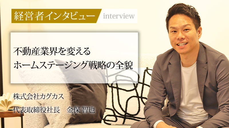 中古物件のホームステージング(※1)事業やリノベーション事業を手がける、株式会社カグカス。同社を率いる代表取締役社長の金保智也氏は、芸能界への挑戦を経て、訪問販売、不動産業界でトップ営業マンとして活躍したユニークな経歴を持つ。「自分の行動で結果が変わることに関しては、絶対に人に負けたくない」という強い信念を原動力に、常に一番を追求してきた。不動産売買の現場を知り尽くしたからこそ生み出せた独自のビジネスモデルは、いかにして生まれたのか。常識にとらわれない発想で道を切り拓いてきた金保氏の信念と、同社が描く未来像に迫る。