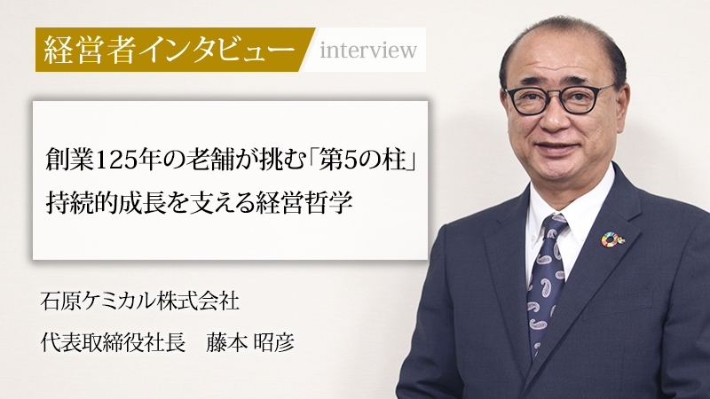 藤本昭彦/1961年兵庫県生まれ。1985年大阪経済大学卒業後、石原薬品株式会社(現・石原ケミカル株式会社)入社。営業やマーケティングに従事。2024年に同社代表取締役社長に就任。