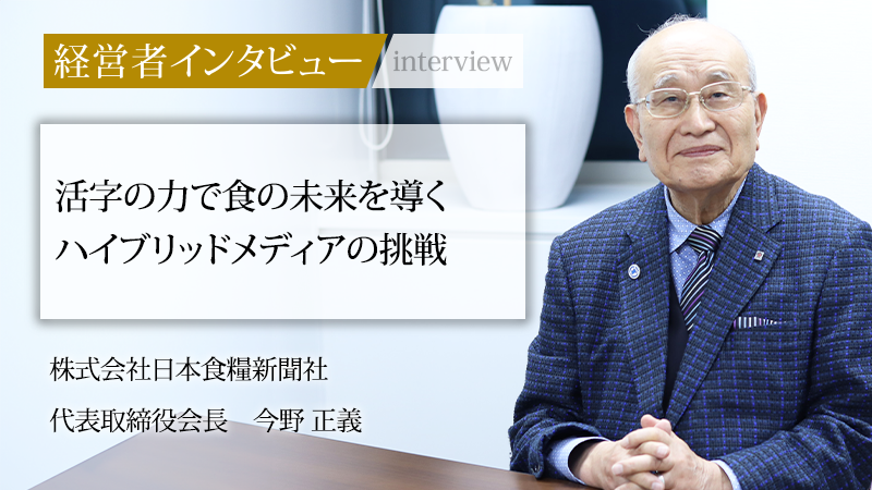 1943年の創刊以来、日本の食産業と共に歩み続けてきた株式会社日本食糧新聞社。業界の「応援紙」としての役割を貫き、信頼される情報発信を続けてきた。紙媒体が転換期を迎える現代において「紙は減っても活字は増えている」と捉え、紙、デジタル、イベントなどを駆使した「ハイブリッド型メディアサービス」を展開する。82年の歴史のなかで60年という長きにわたり、業界の変遷を見つめてきた代表取締役会長の今野正義氏に、その揺るぎない信念とメディアの未来像について話をうかがった。
