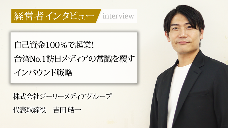 台湾をはじめとする中華圏向けに日本観光情報を発信する、インバウンドメディアのパイオニア的存在の、株式会社ジーリーメディアグループ。同社は、台湾で絶大な人気を誇る訪日観光メディア『ラーチーゴー!日本』を運営し、日本の地方自治体や企業と台湾の旅行者を結びつけている。代表取締役の吉田皓一氏は、防衛大学校中退、放送局の営業職というユニークな経歴を持つ。一見、回り道にも見えるキャリアだが、そこで培われた経験と「ソフトパワー」で国に貢献したいという一貫した思いが、事業の成功に結びついた。その軌跡と独自の経営哲学に迫る。