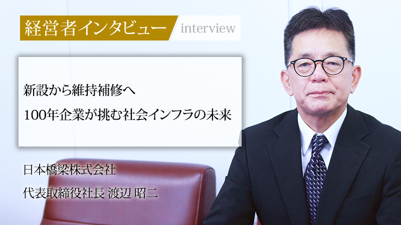 1919年の創業以来、100年以上にわたり日本の社会インフラを支え続けてきた日本橋梁株式会社。かつては本州四国連絡橋をはじめとする数々の国家プロジェクトに参画し、インフラ整備の一翼を担ってきた。しかし時代は移り、同社は新設橋梁中心の事業から、既存インフラを維持・補修するメンテナンス事業へと軸足を戦略的に移行している。その舵取りを担うのが、代表取締役社長の渡辺昭二氏だ。技術者としてキャリアをスタートし、同社の経営危機には企画部門で銀行との交渉など再建に尽力した経験を持つ。「人生は一度きり」と覚悟を決め、歴史ある企業のトップに就いた同氏に、事業変革の最前線と、社員が誇りを持てる仕事の魅力について話を聞いた。