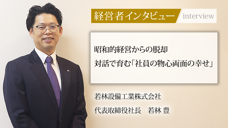 ライフラインを支える設備・管工事業を手がける若林設備工業株式会社。大手ゼネコンでの経験を経て家業に戻った若林豊氏。同氏は、若手が育たず疲弊していた昭和的な組織風土を目の当たりにした。そこから「社員とその家族の物心両面の幸福」という理念を第一に掲げる。そして組織を変革し、売上と利益を着実に成長させてきた。若手が次々と辞めていく危機的状況から、いかにして「社員一人ひとりが互いのために尽力する」会社をつくりあげたのか。その根底にある経営理念と今後の展望についてうかがった。