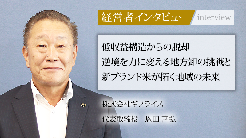 岐阜県に根ざし、県内最大の米卸として地域の食を支える株式会社ギフライス。同社は、大手量販店との取引を基盤に成長を遂げてきた。しかしその道のりは、国の政策に左右される薄利な業界構造や、コロナ禍による未曾有の危機など、決して平坦ではなかった。幾多の困難を乗り越え、現在は岐阜の米のブランド化に情熱を注ぐ同社代表取締役の恩田喜弘氏。同氏はいかにして会社の成長を牽引し、未来を切り拓こうとしているのか。その軌跡と、業界の未来にかける思いを追った。