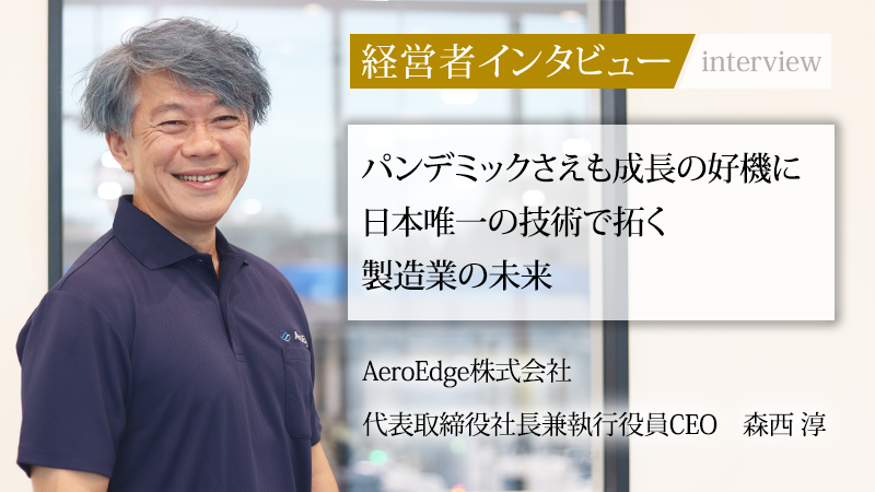 栃木県足利市に拠点を構え、民間航空機のジェットエンジン部品製造を手がけるAeroEdge株式会社。同社は、世界の航空機メーカーが使用する部品において、日本で唯一の量産技術を確立している企業である。その技術は世界で2社しか持ち得ないものだ。新型コロナウイルスのパンデミックさえも成長の好機と捉え、大胆な改革を実行する同社代表の森西淳氏。その経営手腕の根底には、幼少期から抱き続けるヒーローへの憧れと、従業員への深い感謝があった。前職での挫折を原動力に会社を設立し、世界へ挑み続ける同氏に、その軌跡と未来への展望をうかがった。