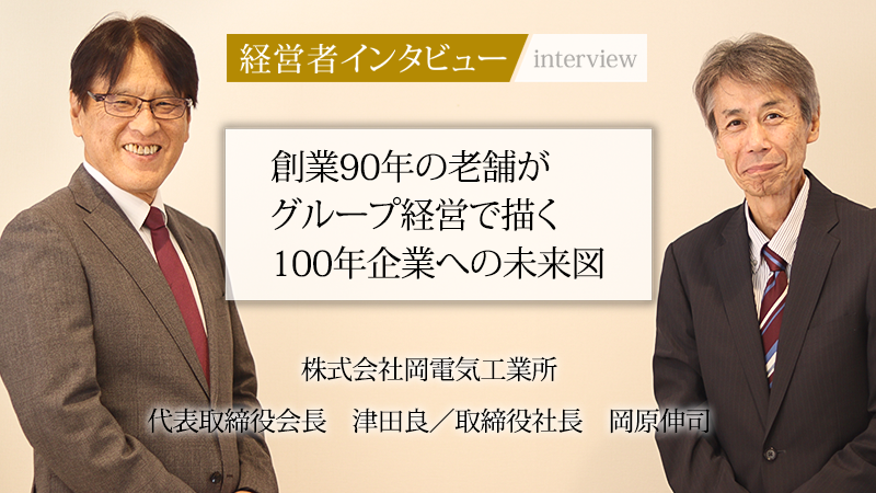 建設業界が人手不足という構造的な課題に直面する中、企業の持続可能性が改めて問われている。特に、専門技術を要する電設業界(※1)では、人材の確保と育成が経営の根幹を揺るがす問題となっている。そんな中、創業90年という長きにわたり、大手化学メーカーをはじめとする顧客との強固な信頼関係を築いてきたのが、株式会社岡電気工業所だ。同社は、長年経営を率いてきた現会長の津田良氏から現社長の岡原伸司氏へとバトンが渡され、新体制のもとで次なる成長戦略を描く。90年の歴史を守りながら、業界全体の課題解決と持続可能な社会の実現に挑む、同社の挑戦の軌跡と未来への展望をうかがった。