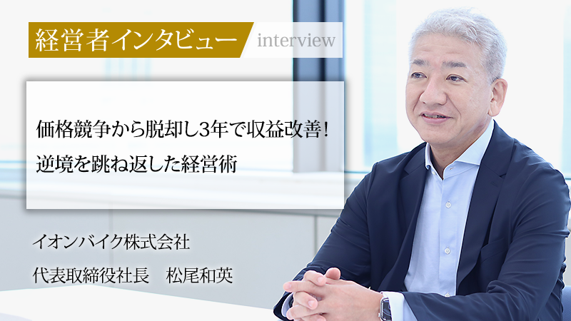 イオンバイク株式会社は、イオンのショッピングセンターを中心に店舗を展開し、自転車の販売とサービスを一体的に提供する事業モデルを確立している。しかし、業績は厳しい結果となっていた。そのような状況の中、2022年に代表取締役社長に就任したのが松尾和英氏である。