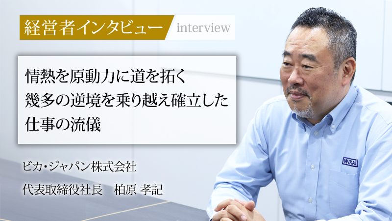 ドイツに本社を置くビカ・ジャパン株式会社は、圧力・温度などの計測機器分野で世界トップクラスのシェアを誇る。一族経営による中長期的な視点と、世界中に張り巡らされた生産・供給網を強みに、顧客の事業を止めない安定供給を実現している。同社の日本法人を率いるのが、代表取締役社長の柏原孝記氏だ。自動車レースへの情熱からキャリアを始め、日系大手から米国の巨大企業まで渡り歩き、数々の逆境を乗り越えてきた。グローバルな環境で培ってきた独自の仕事観、そして日本人が世界で活躍するための視点について話を聞いた。
