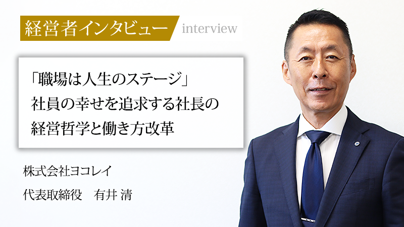 高度な技術で空調設備サービスを提供する株式会社ヨコレイ。「品質とスピード」を徹底することで、法人顧客との厚い信頼関係を築き、着実に成長を遂げてきた。その根底にあるのは、「職場は人生のステージであり、社員一人ひとりの幸せを追求する」という、代表取締役である有井清氏の確固たる経営哲学だ。社長就任後、ドラッカーマネジメントを導入して組織の変革を推し進めながらも、先代から受け継いだ理念を大切に守り続けている有井氏。働き方改革や物価高といった時代の変化を追い風に変え、社員の健康と経済的な充足を第一に考える経営を通じて、持続可能な未来を築き上げていくその軌跡と、未来を担う若手への熱い思いをうかがった。