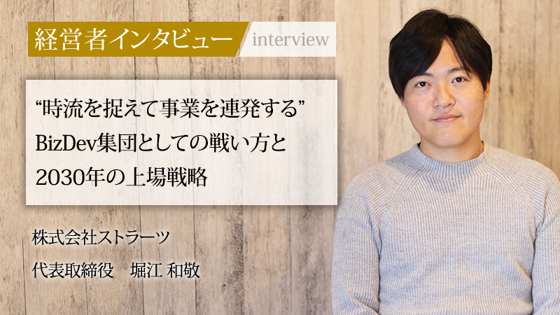 株式会社ストラーツは、「Growth Engine(あらゆる産業の生産性を向上する)」を理念に掲げ、時流を捉えた事業を連続的に展開するBizDev(事業開発)集団である。イベント/展示会制作、AIコールセンター。共通点は“非効率な産業に構造改革を起こす”という一点。同社を率いるのは、事業開発・営業・マーケティングを一気通貫で経験し、自らも複数の事業を立ち上げてきた堀江和敬氏。「最大のインパクトが出る領域に参入する」という一貫した考えのもと、同社は現在、2030年の上場に向けて加速し続けている。本稿では、堀江氏の原体験から、事業戦略・組織戦略・未来像までを紐解いた。