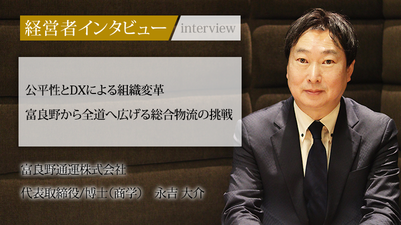 北海道富良野市に拠点を置く富良野通運株式会社は、トラック輸送に加え、鉄道や船舶輸送のノウハウも駆使する総合輸送力が強みだ。同社を率いる代表の永吉大介氏は、JR貨物という大企業でのキャリアを経て、「よりお客様の顔が見える場所で働きたい」という思いから同社へ転職した。入社後に感じた大企業と中小企業のギャップを原動力に、社長として「公平性の徹底」と「DXの強力な推進」という組織変革を実行。属人性を排し、社員が挑戦できる環境を整えてきた。富良野の未来を見据え、“点”から“ゾーン”への事業展開を描く永吉氏に、その経営論と未来への展望を聞いた。