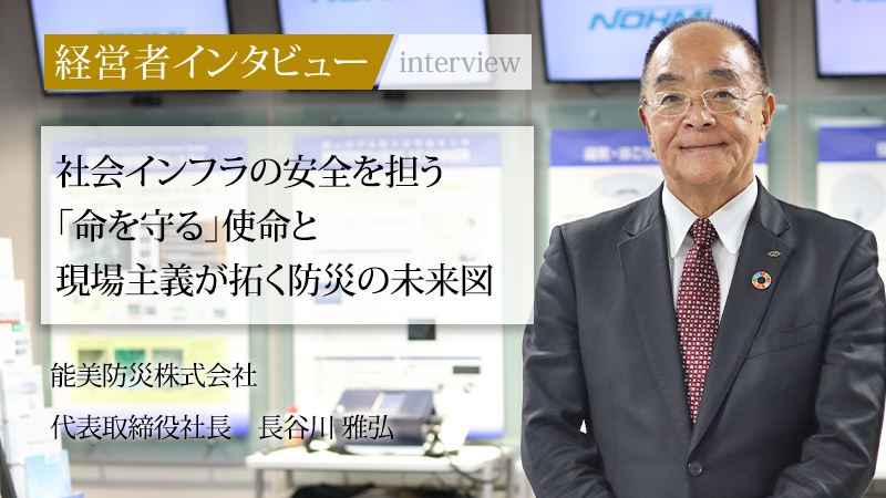 人々の生命と財産を火災から守る防災事業のリーディングカンパニー、能美防災株式会社。同社は自動火災報知設備や消火設備の開発・製造から施工、保守までを一貫して手がけ、防災業界のトップメーカーとして社会の安全を支えている。長年にわたりトンネルやプラントなど大規模な現場の第一線でキャリアを重ね、2025年に代表取締役社長へ就任した長谷川雅弘氏。現場で培った知見と「社会に役立つ仕事」という揺るぎない信念を胸に、変化する社会の新たなリスクに挑む同氏に、これまでの歩みと防災の未来に向けた展望をうかがった。