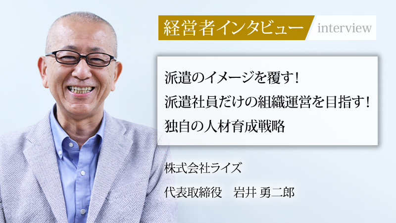 建設およびIT分野における人材サービスを展開する株式会社ライズ。同社は、未経験者の採用・育成に強みを持ち、業界でも珍しい手厚いフォロー体制と独自の組織制度を構築している。代表取締役の岩井勇二郎氏は、技術者として現場を経験し、人材サービス業に従事した経歴を持つ。その経験から、「派遣」という働き方が持つ可能性を誰よりも信じ、社員の成長を第一に考える企業文化を育んできた。派遣社員の自主性を促し、「自走できる組織」を目指す同氏に、その独自の仕組みと未来への展望を聞いた。