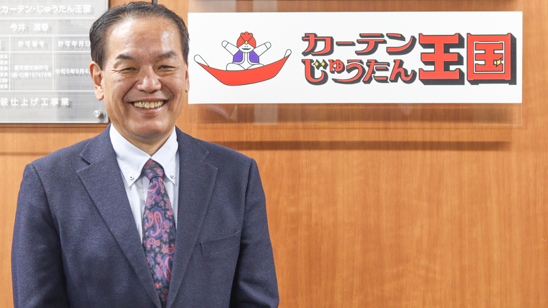 カーテンとカーペットの専門店として、圧倒的な品揃えと専門知識で顧客の暮らしを彩る株式会社カーテン・じゅうたん王国。同社はプライベートブランド商品の開発に注力し、素材選定から縫製に至るまで徹底した品質管理を行うことで、他社との差別化を図っている。また、デジタル技術を活用しつつも、あくまで「店舗」と「人」を軸に置いた独自の戦略で、新たな顧客体験の創出に挑んでいる。異業種での経験を経て入社し、組織の変革と成長を牽引する代表取締役社長の今井満春氏に、事業にかける情熱と今後の展望について話を聞いた。