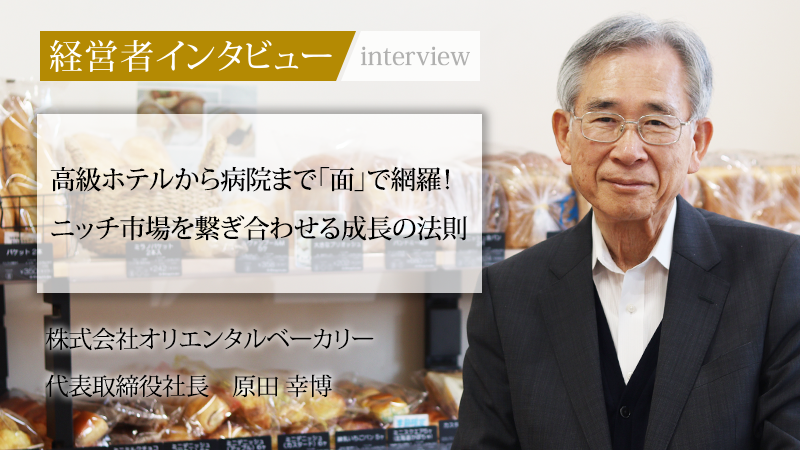 喫茶店やホテル、病院などにパンを届ける業務用パンメーカー、株式会社オリエンタルベーカリー。同社は顧客の課題に寄り添う提案力と、多種多様なニーズに応える守備範囲の広さを武器に成長を続けてきた。その躍進を製造部門の責任者として、そして社長として牽引してきたのが原田幸博氏である。売上高2.2億円、社員50人だった会社をいかにして1500人規模の企業へと成長させたのか。大手が敬遠する製法への挑戦、人材育成への情熱、そして「元気で明るく愉しい会社」を目指す経営の哲学に迫る。
