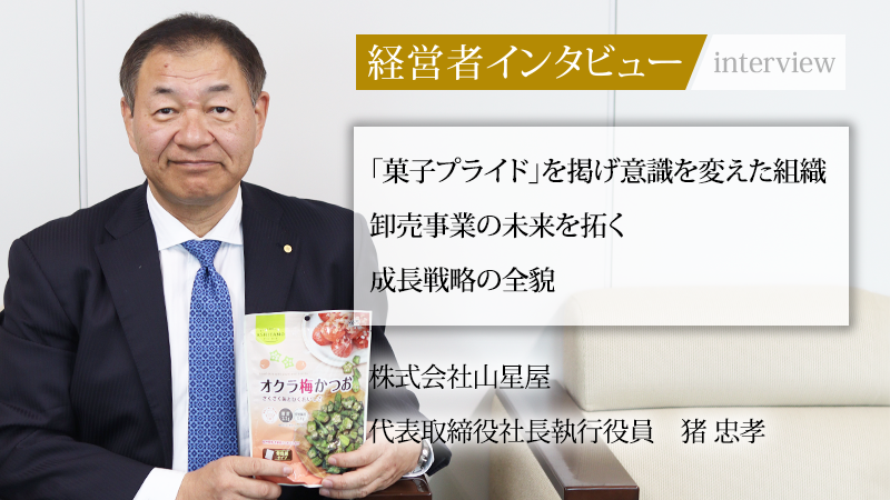 国内トップクラスのシェアを誇るお菓子専門商社、株式会社山星屋。同社は商品を右から左へ動かすだけの卸売業にとどまらず、長年蓄積したデータやナレッジを駆使し、小売店の売上を向上させる提案力と独自の商品開発力を強みとする。その舵取りを担うのが、代表取締役社長執行役員の猪忠孝氏だ。大手商社や食品メーカーでの多彩な経験を経て就任した同氏は、「従業員主体の経営」と「菓子プライド」という独自の価値観を掲げ、組織の力を最大限に引き出してきた。菓子業界のリーディングカンパニーはいかにして築かれたのか。その軌跡と未来への展望に迫る。