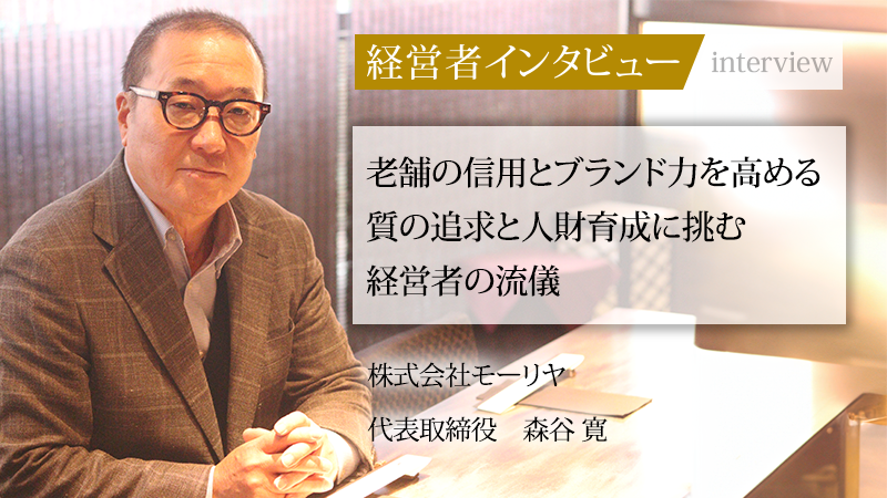 140年の歴史を持つモーリヤの信頼は、森谷氏の「金払ってでも苦労は買え」という信念によって支えられている。あえて自らに負荷をかけ、現場で泥臭い経験を積み重ねてきたその姿勢こそが、現在の「質の高いサービス」と「足腰の強い経営」の礎だ。お客様の満足と、メンバーの自律的な成長を永遠の課題と捉え、真摯に向き合う同氏の情熱からは、老舗でありながら現状に決して満足しない挑戦者としての気概が感じられる。この真摯さこそが、老舗モーリヤの未来を確かなものにしていくに違いない。