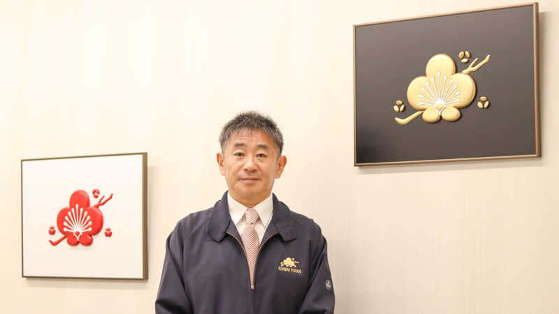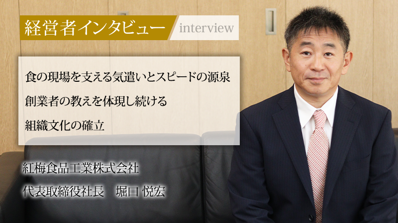 堀口悦宏/1972年東京都生まれ。短大卒業後、米国に3年間留学し国際感覚を養う。1995年紅梅食品工業株式会社に入社し工場勤務を経験。1997年より株式会社モスフードサービスで商品開発に従事。2005年紅梅食品工業に復帰し、社長室長、専務取締役を経て、2015年に代表取締役社長に就任。