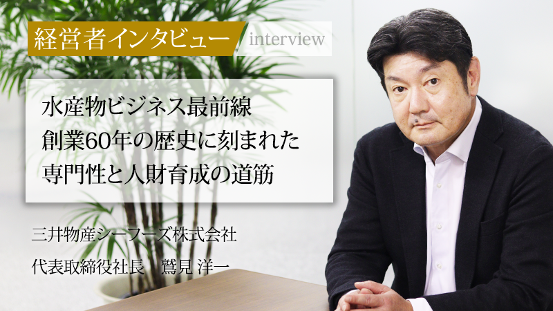 三井物産グループの一員として、水産物の輸入販売や日本産食材の輸出を手掛ける三井物産シーフーズ株式会社。同社は前身の東邦物産時代から数えて60年以上の歴史を持ち、変化に対応する「柔軟性」と「しなやかさ」、そして水産物に関する「専門性」を強みとしている。2024年10月に代表取締役社長に就任した鷲見洋一氏に、同社の事業、水産物ビジネス特有の難しさ、そして持続的成長に向けた経営の考えについて話を聞いた。