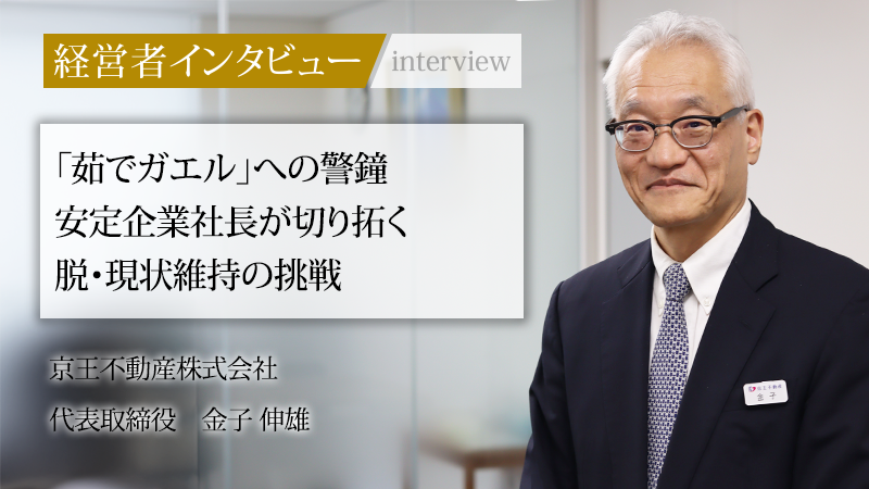 京王線沿線を中心に、地域に根差した不動産事業を展開する京王不動産株式会社。京王グループの一員として、売買・賃貸仲介から管理、開発、アセットマネジメントまで、不動産に関するあらゆるニーズにワンストップで応える「総合不動産事業」を推進している。盤石な経営基盤を持つ同社だが、2024年に代表取締役社長に就任した金子伸雄氏は「現状維持は停滞の始まり」と警鐘を鳴らす。金融・不動産のプロフェッショナルとして激動の時代を歩んできた金子氏に、組織変革への覚悟と、人口減少社会を見据えた次なる成長戦略を聞いた。