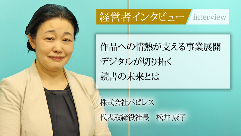 インターネット黎明期の1995年から電子書籍の可能性を追求してきた株式会社パピレス。同社が運営する電子書籍レンタルサイト「Renta!」は、時代の変化を的確に捉え、独自のサービスモデルで多くのユーザーの支持を集めている。30年にわたり業界の先駆者として走り続ける同社の強みは、出版社との粘り強い交渉を重ねた歴史、システムやビューアーを自社開発する高い技術力にある。そして「作品が好き」という社員たちの純粋な情熱が根底を支えている。創業期から同社を支え、現在は代表としてグローバル展開を率いる代表取締役社長の松井康子氏に、これまでの軌跡とコンテンツの未来について話を聞いた。