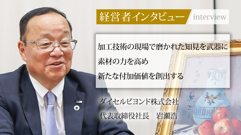 2022年、ダイセルグループの一員として誕生したダイセルビヨンド株式会社。総合化学メーカーとして長い歴史を持つ同グループの中で、素材の加工や後工程を担う。そして、新たな付加価値を生み出す挑戦を続けている。大手印刷会社から転身した代表取締役社長の岩瀨浩氏は、加工技術と経営の両面に精通する。ものづくりの現場に新たな視点と変革をもたらす岩瀨氏の歩みと、会社として描く未来像について話をうかがった。