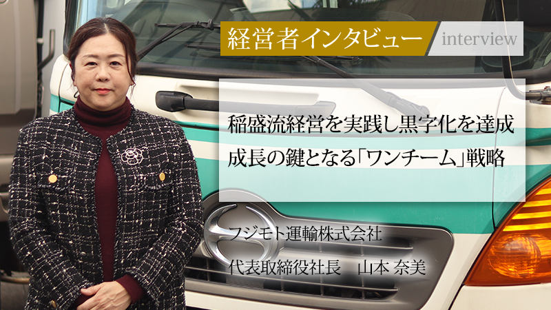 京都府を拠点に、食品の共同配送事業を展開するフジモト運輸株式会社。同社は、超冷凍から常温まで異なる温度帯の商品を一台のトラックで運ぶ「異温度帯共同配送」を強みとし、顧客の物流コスト削減と効率化に貢献する。幼稚園教諭から運送会社の代表取締役社長へというキャリアを持つ山本奈美氏は、稲盛和夫氏の経営哲学を胸に、コロナ禍という厳しい状況下で経営の舵取りを担ってきた。社員の心身の健康を第一に考え、着実な基盤づくりを進める山本氏に、その歩みと事業にかける思い、そして会社の未来像について話を聞いた。