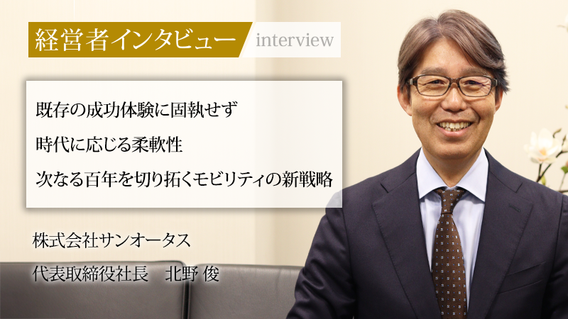 神奈川県に本社を置き、サービスステーション(SS)運営やカーライフサポート事業を展開する株式会社サンオータス。創業100周年を目前に控える同社は、エネルギー転換期という激動の時代において、柔軟な事業変革で成長を続けている。銀行員からの転身という経歴を持つ代表取締役社長の北野俊氏は、就任以来、大胆な決断で組織を牽引してきた。現在、北野氏が掲げるのは「個人の人生の充実こそが会社の成長を創る」という信念だ。老舗企業が挑む組織風土の大改革と、次なる100年に向けたモビリティ戦略について、北野氏に話を聞いた。