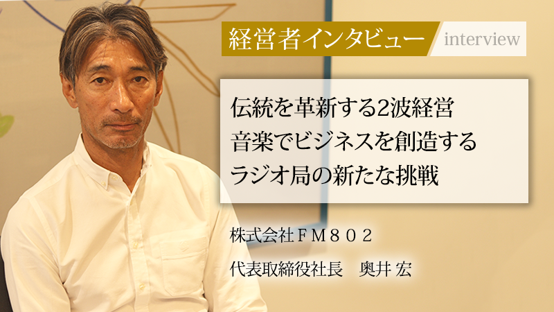広告代理店の激しい競争を勝ち抜き、長年の熱心なリスナーでもあった奥井宏氏が、自身の「もっと面白いラジオ局にできるはずだ」という思いを胸にFM802へ転職したのは、今から30年以上も前のこと。そして、コロナ禍の2020年に代表取締役社長へ就任した。逆境からのスタートを乗り越え、ラジオの枠組みにとらわれない新たな挑戦を見据える奥井氏に、その軌跡と展望について話を聞いた。