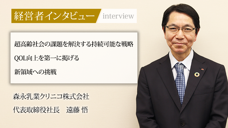 森永乳業グループの一員として、流動食や栄養補助食品で医療・介護現場の栄養管理を支える森永乳業クリニコ株式会社。設立から約50年、利用者のQOL(生活の質)向上を徹底的に追求する製品力と、全国に根差した営業力を強みとしてきた。代表取締役社長の遠藤悟氏は、長年所属した森永乳業株式会社での経験を礎に、「継承と変革」を掲げ、組織を牽引する。超高齢社会が本格化する2040年の未来を見据え、同社が描くビジョンとは何か。社員一人ひとりの成長を支える企業文化とともに、その戦略の核心に迫る。