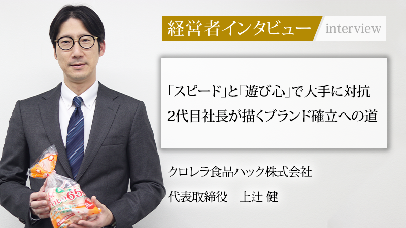 予期せぬ出来事から経営者へ転身した上辻氏。大手ブランドとの正面衝突を避け、製造委託先の雇用維持という社会的責任も視野に入れた事業展開には、経営者としての強い責任感が滲み出ている。製造工場を持たない特長を活かし、スピードとアイデアで市場の隙間を的確に捉えるクロレラ食品ハック。父から受け継いだバトンを手に、創業以来の課題であった自社ブランドの確立を目指し、全社を挙げて変革に挑む姿勢は、これからも続いていくことだろう。